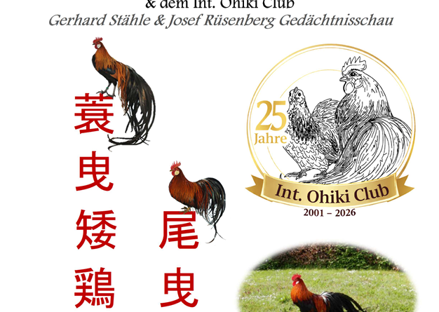 Wir laden alle Interessierten zur 14. Bundesschau des Sondervereins Phönix, Zwerg Phönix und Onagadori, dem Sonderverein zur Erhaltung Asiatischer Langkräherrassen & dem Internationalen Ohiki Club mit angeschlossener Gerhard Stähle & Josef Rüsenberg ganz herzlich ein!