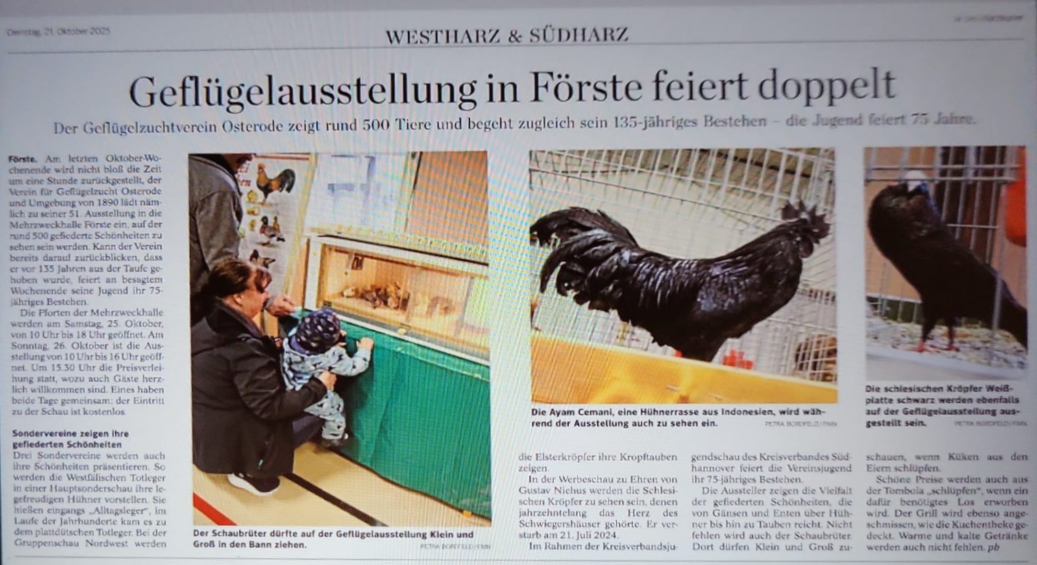 Bericht über die 49. Sösetal-Rassegeflügelschau im Eseltreiber vom 18.11.2023 (Bezahlartikel)